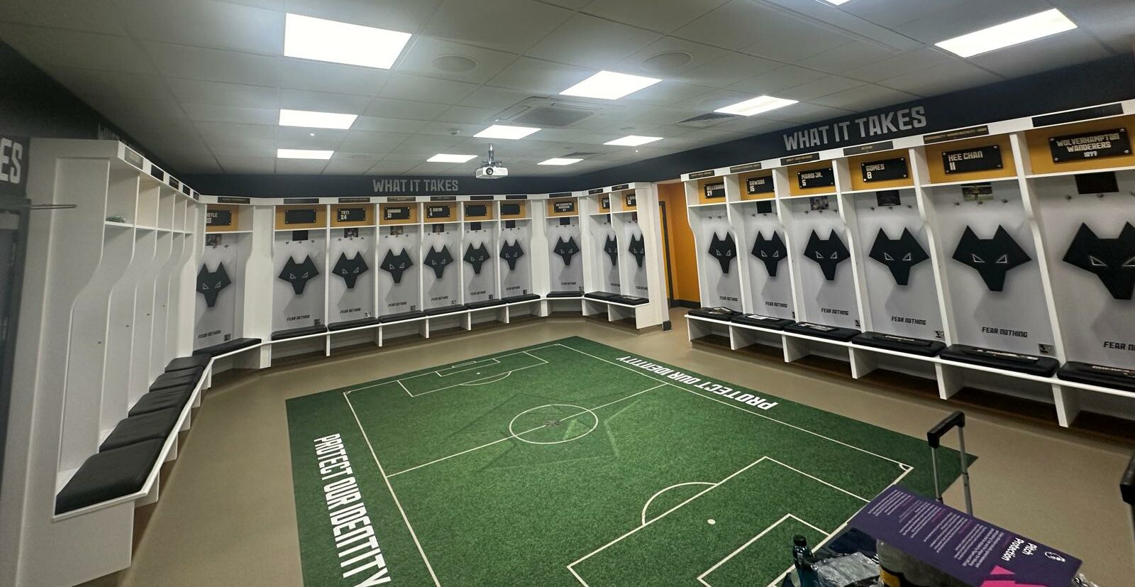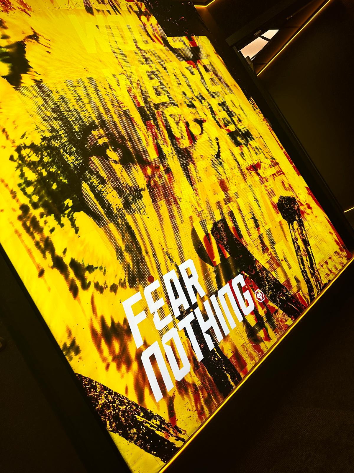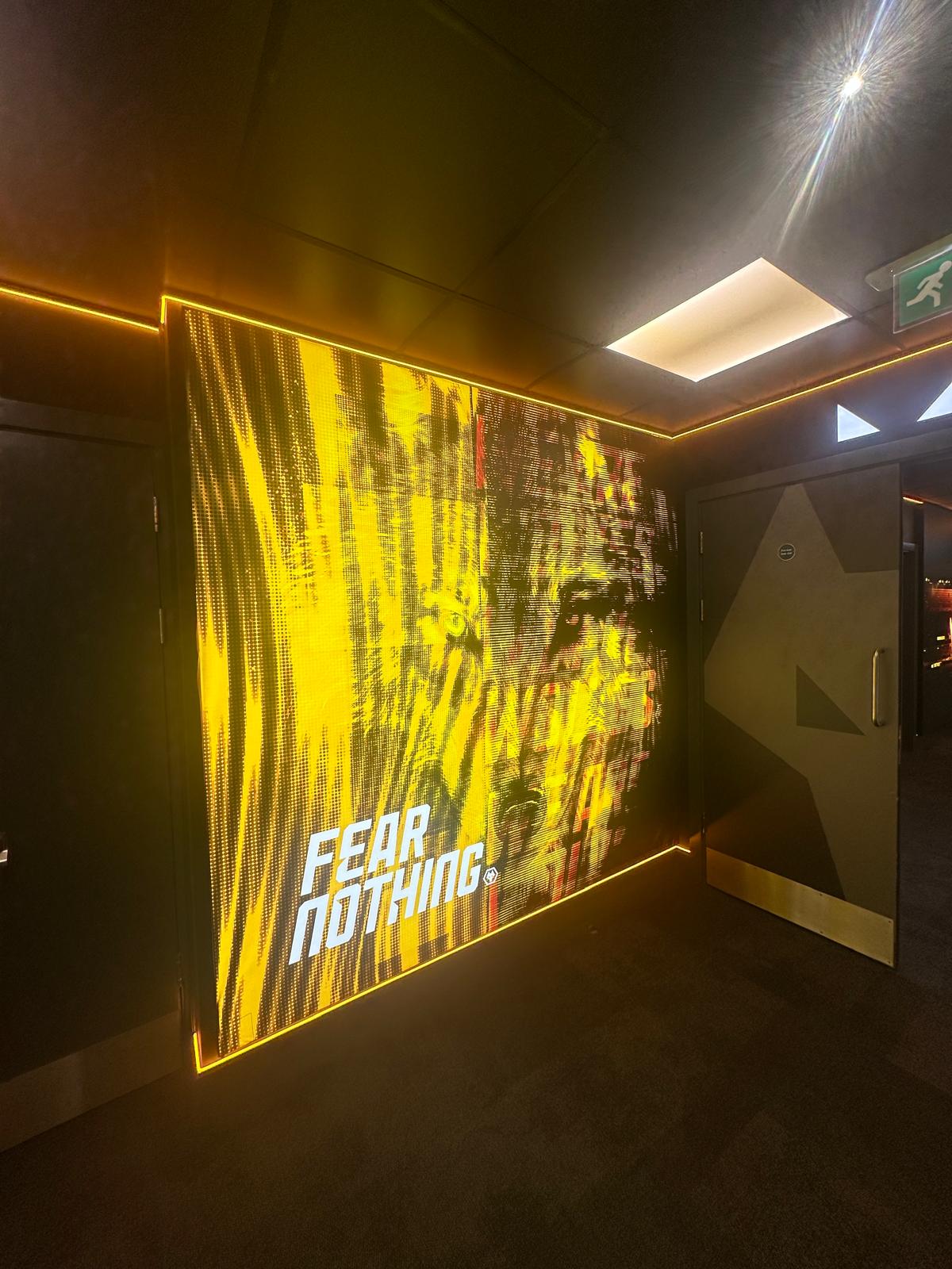 Instilling the ‘One Pack’ club ethos at all levels of Wolves FC through inspiring graphics that are displayed through innovative signage solutions and lighting. From the gym, dining areas and player’s lounge areas at the Training Facility, right through to walkout onto the hallowed turf at Molineux. The variation of solutions reflect the dynamic nature that should be present throughout a club competing in the most prestigious football league in the world.